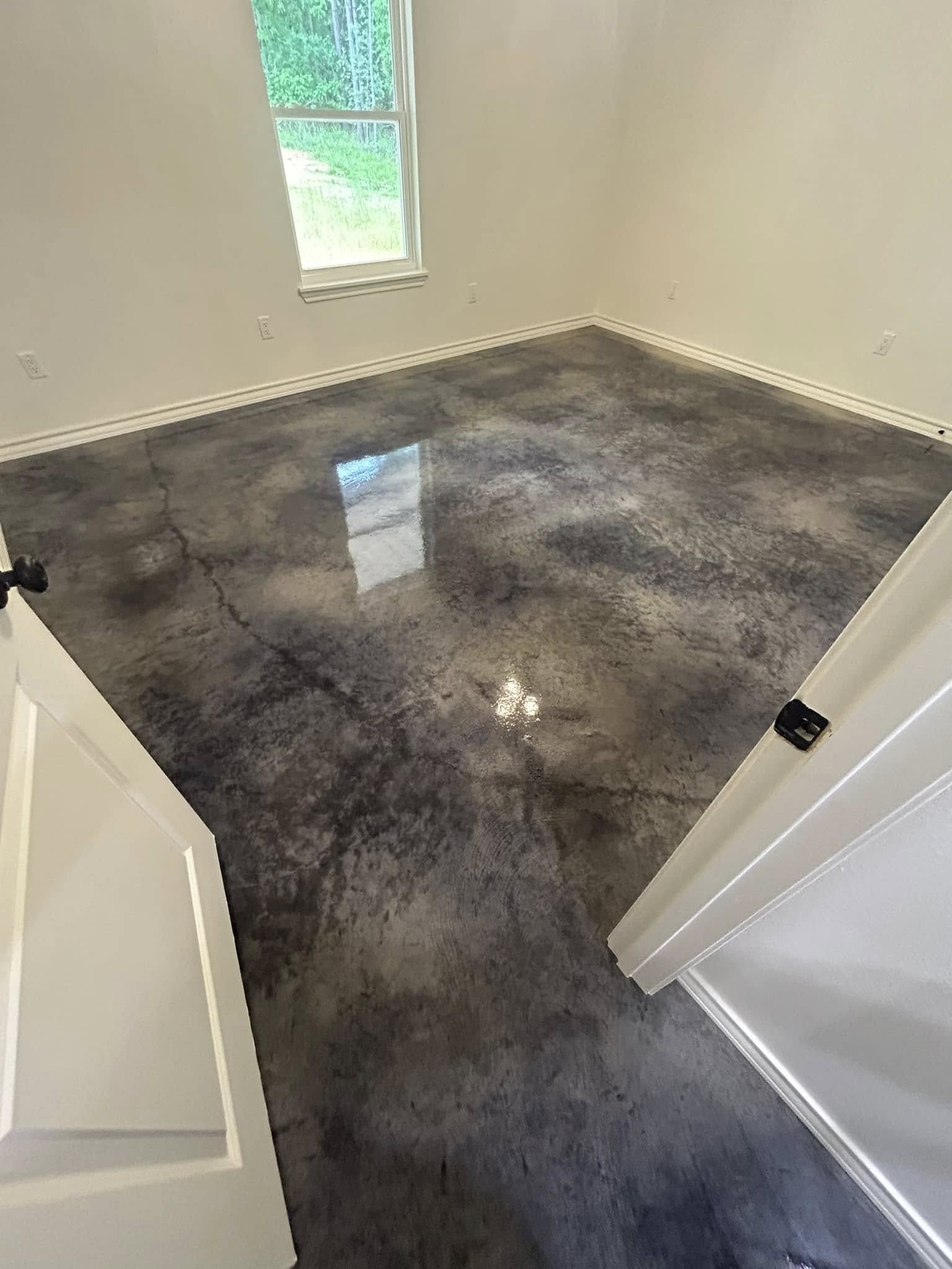 Garage floors and workshop spaces in Texarkana take a beating from vehicle traffic, dropped tools, and chemical exposure. Standard concrete absorbs stains and shows wear quickly, but an epoxy floor system creates a durable, cleanable surface that holds up under daily use. Metallic epoxy delivers a high-gloss finish with unique color movement and depth, while flake epoxy systems provide slip resistance and hide minor imperfections in the underlying slab. Both options are commonly installed in residential garages, shops, and commercial interiors throughout the Texarkana area.